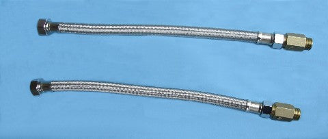 Steel braided soft supply lines for deck-mount bathtubs and faucets.
