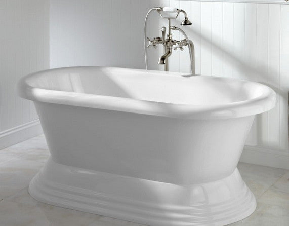 A 60" traditional dual rim acrylic bathtub on a pedestal.