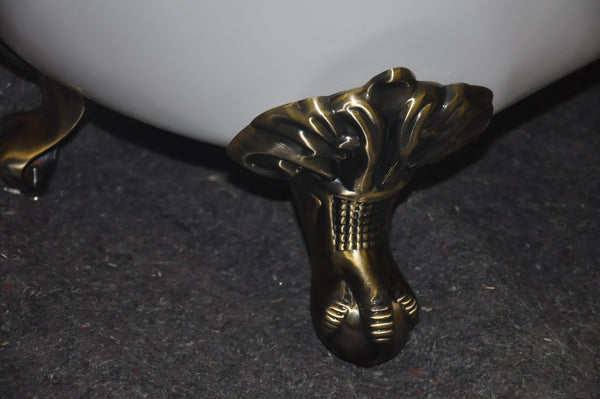 A traditional Acrylic Slipper bathtub with claw feet, 51½ inches in length.  This elegant Victorian slipper style tub is perfect for a lounging soak with its extended gentle slope backrest for comfortably reclining as you bathe.