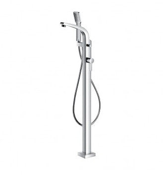 This is a lovely modern floor-mounted faucet for use with bathtubs without rim holes.